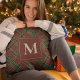 This festive throw pillow is perfect for your holiday decor. The design features burgundy and green plaid pattern with gold accent and personalized with your initial.