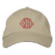 Personalized monogrammed hats in burgundy red and khaki, change the monogram color and hat color to design your own baseball cap.