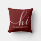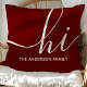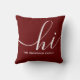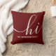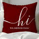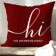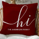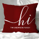 Welcome guests with a warm and stylish touch using this personalized throw pillow. Featuring a modern script "hi" and customizable family name, this burgundy pillow complements various home decor styles. Perfect for adding a personal touch to your living room or bedroom.