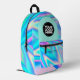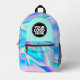 Create your own backpack with this cool template. Make your own personalized Business Logo and Text Holographic Printed Backpack. A unique and trendy accessory that combines personalization with cutting-edge technology. The bag features a holographic rainbow wave design, making it eye-catching and visually appealing. The name of the owner is printed on the backpack, adding a personal touch that sets it apart from other backpacks. The backpack is made with durable materials that provide protection for books, laptops, and other essentials. It also has adjustable straps and multiple pockets for organization. Overall, this backpack is a stylish and functional choice for anyone looking to make a statement and showcase their name in a creative way.