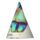 Create personalized party hats featuring iridescent colors. Easy to use template. Butterfly Birthday Design. Use the template to personalize and make it your own.