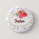 A lovely pin button with a bouquet of roses and an handwriting name in a refined glitter gold fram on a sparkling background of colored confetti and spangles. It's a great accessorie for an event and it can be a nice gift. The design is ready to personalize: customize button by using the boxes on the right hand side of the item to select the size and shape, then press "Personalize this template" to editting the name. Alsow you can click "to customize further" to open up full editing options for make design to whatever you want it to represent: to arrange taxt, change a font and a font color and also to add additional information, images or remove existing.