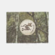 A fleece blanket featuring an illustration of a deer. Background is camouflage. Personalize the name.