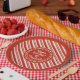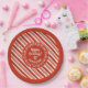 Personalize with your greeting and name! This festive red and white candy cane stripe design with holly branch border will brighten up your holiday party and make cleanup a breeze!
