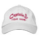A dynamic personalized Captain cap in fuchsia pink style embroidered hat sure to make an impression on, or off the boat. Make this lifesaver anchor design embroidery as unique as you are with your name, your location, or your boat's name.