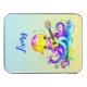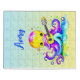 Purple, yellow, mint green, blue funny Kawaii Octopus playing a guitar under water. Add a name in the personalize area. Nursery art.
