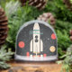 This black-dominant snow globe features a cartoon space rocket with a customizable text. This is a great ornament to cheer your daughter / granddaughter / girlfriend / wife.