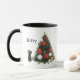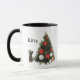 Celebrate the holiday season with this charming and festive two-tone coffee mug! The design features a beautifully decorated, traditional Christmas tree alongside an adorable black cat wearing a cozy elf hat and wrapped in playful string lights.