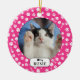 Cute personalized cat Photo Ornament featuring a fishbone & pawprint pattern in white & pink. Just add your pet's name & photo and you're all set to go..