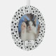 Cute personalized cat Photo Ornament featuring a cat silhouette & pawprint pattern in white & purple. Just add your pet's name & photo and you're all set to go..