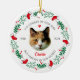 This "Cat´s Memorial Christmas" ornament features a christmas wreath with custom pet photo, name and years of adoption and death.