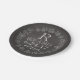 Celebrate the wedding day or anniversary of your favorite bride and groom with this customizable paper plate! An elegant white scroll chalk border on a black chalkboard background surrounds a monogram, couple's names and wedding date. “until forever” is written in script below the wedding date. Makes a beautiful, modern, personalized accessory.