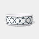 Treat your furry friend to this elegant personalized bowl, featuring a classic Moroccan geometric tile pattern in crisp white and Charcoal Gray for a timeless, stylish look. Perfect for adding a touch of global charm to your pet's mealtime. Personalize with your pet's name.