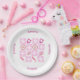 Designed with a trendy pink and white checkerboard pattern, this adorable plate features cowgirl-themed icons like boots, hats, horseshoes, wagon wheels, and lizards — all with a soft floral twist. The design is playful, modern, and feminine, making it the perfect match for any cowgirl birthday party, western baby shower, or country-chic event.