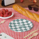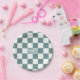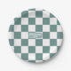 Personalized Checkered Porcelain Turquoise Blue Paper Plates