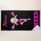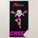 Show off your love for cheerleading with our personalized beach towel. Featuring a pink and black design, this towel is perfect for any cheerleader. Customize it with your name to make it uniquely yours. Perfect for trips to the beach or pool, or as a gift for the cheerleader in your life!