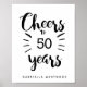 A modern Cheers to 50 years poster sign, which you can easily personalize with his or her name. Great for a 40th birthday party, retirement party, etc.