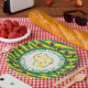 Wisconsin Party Paper Plates with shape of Wisconsin in swiss cheese and footballs.