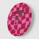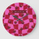 Personalized Cherry Gingham Retro Custom Name Large Clock