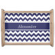 Personalized Chevron Navy Blue White background Serving Tray