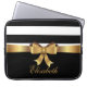 Personalized Chic Black Bold Stripes Gold BOW Laptop Sleeve
