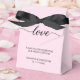 Personalized these pink favor boxes with the bride and groom's names, special message and wedding date. Elegant, simple and chic with a modern script font for the word that says it all "Love". (see other bow color options).