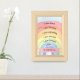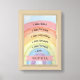 Easy to customize with the child's name, this poster is so much more than a cute design. Featuring the positive affirmations "I am kind, I am brave, I am capable, I am smart, I am loved" and last of all "I am..." with their very own name. Featuring a watercolor rainbow in pastel colors on a cloud background and a pink accent.