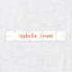 Create your own custom, personalized, monogrammed, waterproof, weatherproof, 100% laundry safe, permanent once applied, cute, colorful, teal green orange red fun colors script typography, faux gold stars pattern background, kids skinny iron-on clothing labels. Easily apply with a household iron and silicone sheets (included) to any fabric that can be ironed. You may individually personalize each of the 4 rows of labels on the sheet. To personalize, simply type your kids' name / names. Perfect for parents to personalize any and all clothes that leave the house, cute, beautiful and tough labels.