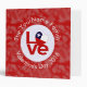 The Chilean LOVE FLAG. Like the others in Auntie Shoe's The LOVE Series, the word LOVE is featured in red letters inside a white, fractal-style circle. The circle sits on a red, fractal-style background. Perfect for Valentine's Day or any special time.