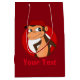 Personalized Gift Bag with an illustration of a cute happy chimpanzee with red baseball cap, with custom text template for your name or message, illustration by MaxiHarmony