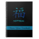 Personalized Chinese Happiness Symbol Notebook. The Chinese character for happiness painted in shades of blue on black. Add in your favorite message, give it a title or let it speak for itself. Just be happy and be thankful for all your favorite things.