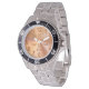 Has heft and feel of expensive stainless steel quartz watches. Good band with safety catch. I removed links, which is easy because engraved arrows show direction to push the linking pins. As always by this seller, the image (a railroad logo) is a perfect reproduction of my emailed image, and is precisely spaced and aligned.