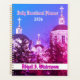 Pink Purple Christian-theme daily devotional business or school notebook event and schedule planner calendar for the busy church woman and business person. Thoughtful appreciation gift to your priest or pastor. Illustrated with an original photograph of the churches in Jerusalem, the Holy Land, to remind you of Jesus and the Christian faith.