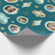 Personalized Christmas Aqua Gold Photo Ornament Wrapping Paper