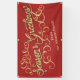 Personalized Christmas greeting banner. Features the words Season's Greetings in a red and gold flourish design. A modern, pretty Xmas design you can personalize with your family's name.