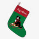 Perfect! Exactly what I ordered! I uploaded a picture of my blue chow, and the screen print was incredible. the back side of the stocking was the red and black checkered print. my puppy's name was also printed on the cuff of the stocking. PERFECT! Highly recommend this product! My puppy's name was screen printed onto the cuff of the stocking, the font was perfect!