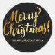 Personalized Christmas Envelope Seal, Black & Gold Classic Round Sticker