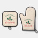 Personalized Christmas Holiday Kitchen Holly Berry Oven Mitt & Pot Holder Set