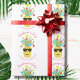 This fun Christmas in July wrapping paper features a yellow pineapple decorated like a Christmas tree and wearing sunglasses. It says Christmas in July in stylish red typography.