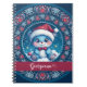 Add a touch of festive cheer to your everyday notes with this personalized notebook featuring an enchanting Christmas-themed kawaii bear design. At the center of this whimsical cover is a sweet blue teddy bear, dressed in a cozy Santa hat and a red bow tie, sitting on fluffy snow under a magical starry night sky. Surrounding the bear is an elegant mandala-inspired border adorned with intricate red and blue floral motifs, blending cuteness with artistic flair. Perfect for personalization, this notebook makes a thoughtful holiday gift or a unique way to keep your thoughts, plans, or sketches organized. Whether for school, work, or journaling, this festive notebook is sure to brighten your day with holiday joy.