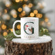 Create the perfect holiday gift with this personalized Christmas monogram mug featuring a bold dark green initial, adorable Santa and reindeer characters, and a festive snowflake background. Add any name to make it uniquely yours—ideal for kids, adults, teachers, coworkers, Secret Santa exchanges, or thoughtful stocking stuffers. Printed in high-quality detail, this charming ceramic mug is perfect for hot chocolate, coffee, or cozy winter drinks. A joyful and timeless Christmas keepsake everyone will love using year after year.