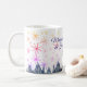 Personalized Christmas mug with watercolor snowflakes and icicles.