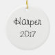 Lightweight, smooth, pure white ornament with nice sheen. Perfect size to be seen from across the room ... and to attract closer inspection! Price was great for ordering enough for the whole family! Clear, bold black design just as requested. Matches the order exactly. Just so nice!