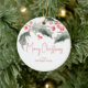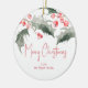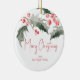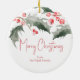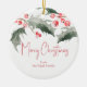 These personalized Christmas ornaments features your greeting with a top boarder of holly and red berries on both sides. Use the template fields to add your custom text to this round ornament. To see more holiday designs and to create your own, visit www.zazzle.com/lovelypaperboutique