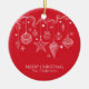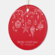 Lightweight, smooth, pure white ornament with nice sheen. Perfect size to be seen from across the room ... and to attract closer inspection! Price was great for ordering enough for the whole family! Clear, bold black design just as requested. Matches the order exactly. Just so nice!