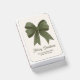 Personalized Christmas Party Favor Idea Green Bow Matchboxes. Customize with your name and greeting. Perfect for work or personal gatherings.