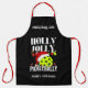 Fun, festive black Pickleball Christmas Apron with CUSTOMIZABLE TEXT at the bottom, which you can easily personalize. Design shows a pickleball in a santa hat with festive decorations and lights. The customizable text reads MERRY DINKSMAS and you can change this to your name or team. You can also add your name at the top. This unisex Christmas Pickleball Apron would make a great Christmas gift for those festive family get-togethers. Buy one for each member of your family so they can help with the Christmas dinner. Also in white. Matching gifts available.