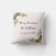 An off white Merry Christmas throw pillow personalized. It's reversable to a red Merry Christmas. Available in different fonts and pillow sizes. The date can be deleted if you like.