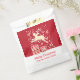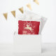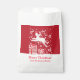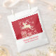 Fun reindeer in the snow add your own text or name Christmas party thank you gift bag in shades of red and white. Perfect for your Christmas food favors. Bold fun design featuring a reindeer jumping over boxed gifts in festive colors. Personalize with your our greeting and family name, currently reads Happy Christmas from the Dickens family.