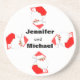 Personalize the names on these Santa Clause Christmas coasters or delete the template areas prior to purchase.